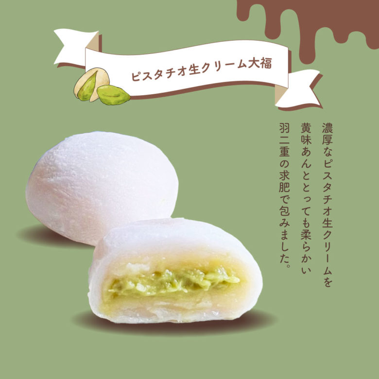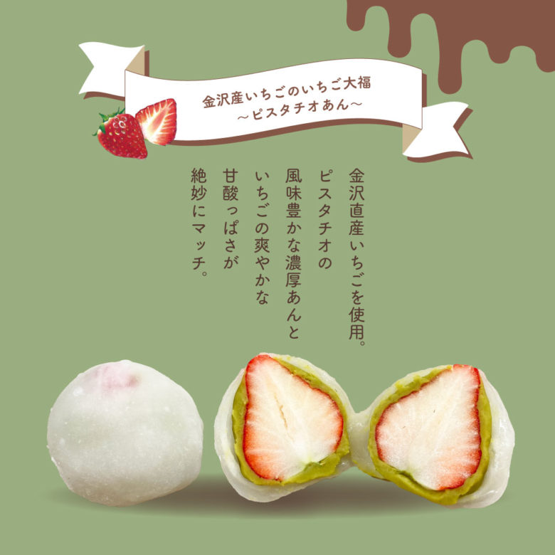 今回のテーマに合わせピスタチオあんのいちご大福も販売します。
